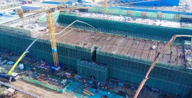 再把目光转到中心控制室。它是整个工厂生产运行期间的决策中枢、信息中心和调度核心。自主体结构动工以来,项目团队面临着复杂施工环境、交叉作业等诸多难题。但他们始终将质量管控和安全生产放在首位,科学组织施工,精心安排每一个环节,确保已完成的主体结构框架能够满足未来承载智能化控制系统的需求。