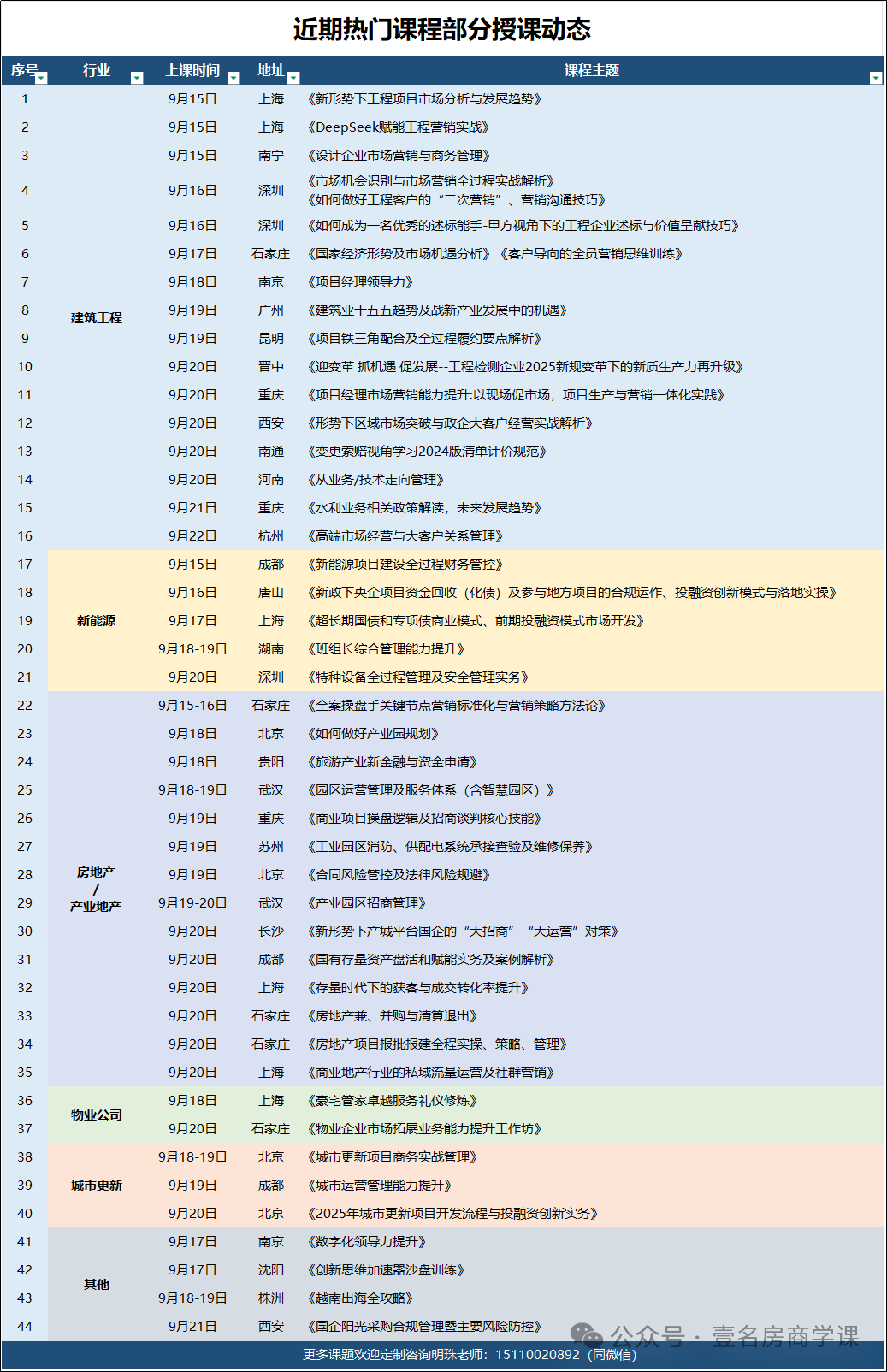 备注:壹名房商学院课程均以长期跟踪案例为素材;与您分享真正的实操经验!本课题可赴企业定制内训!