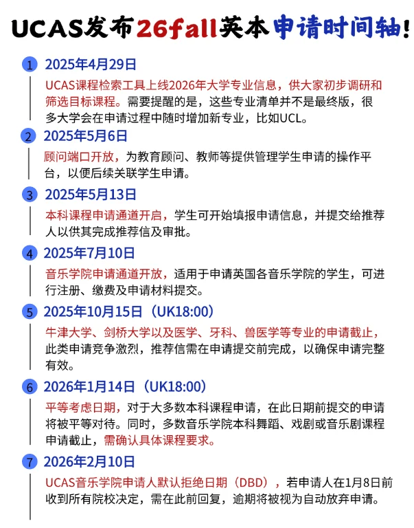 随着2025年9月2日UCAS本科申请通道正式开放,2026年秋季入学的英本申请大战已拉开帷幕。今年UCAS悄然调整了两大关键时间节点。