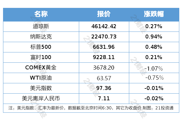 纽约股市三大股指9月18日上涨。截至当天收盘,道琼斯工业平均指数比前一交易日上涨124.10点,收于46142.42点,涨幅为0.27%;标准普尔500种股票指数上涨31.61点,收于6631.96点,涨幅为0.48%;纳斯达克综合指数上涨209.40点,收于22470.73点,涨幅为0.94%。